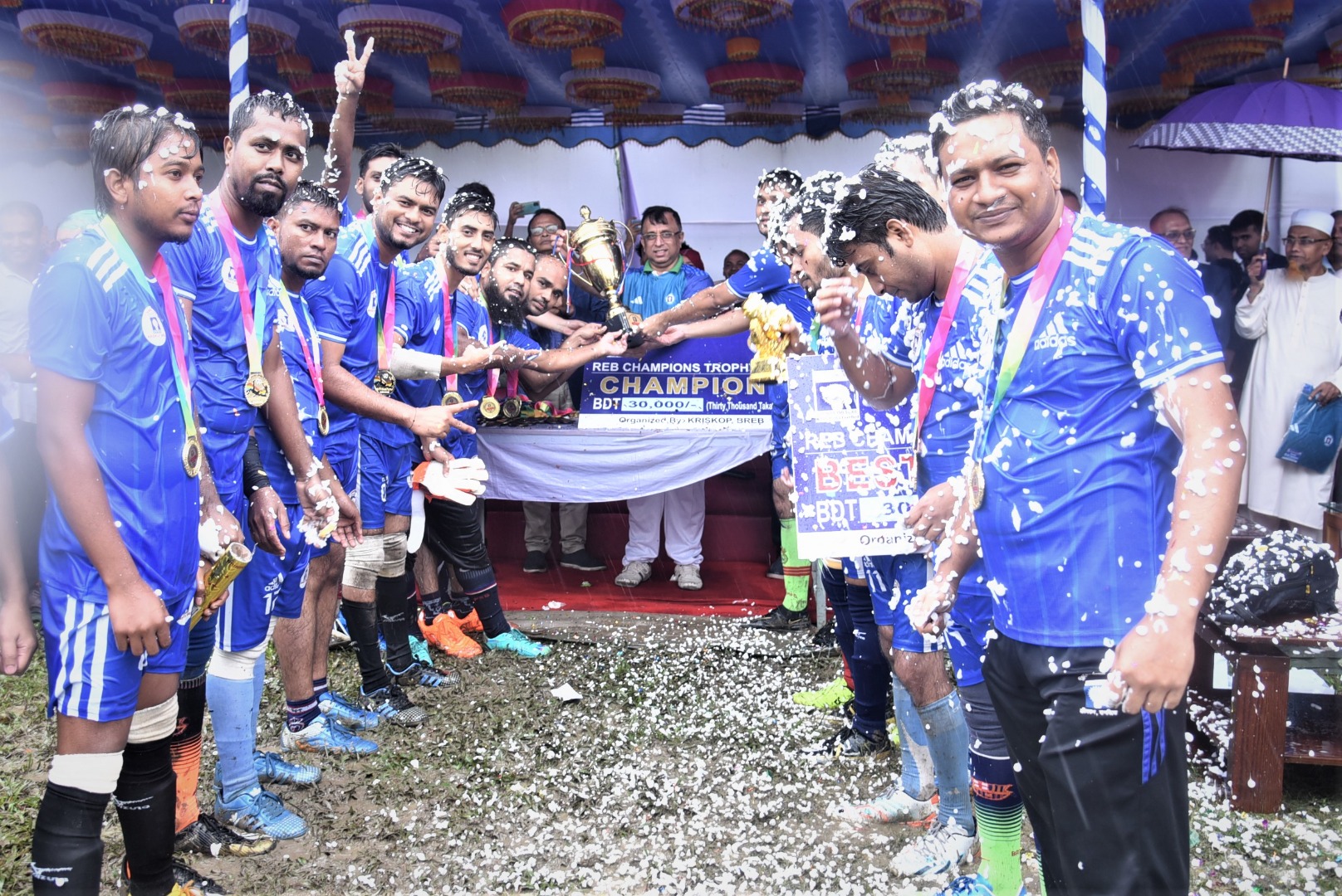 ‘চ্যাম্পিয়ন্স ট্রফি ফুটবল টুর্নামেন্ট-২০২৩’ এর বিজয়ী ‘স্মার্ট আরইবি’ দলের দলপতির হাতে ট্রফি তুলে দিচ্ছেন সম্মানিত চেয়ারম্যান মোহাং সেলিম উদ্দিন