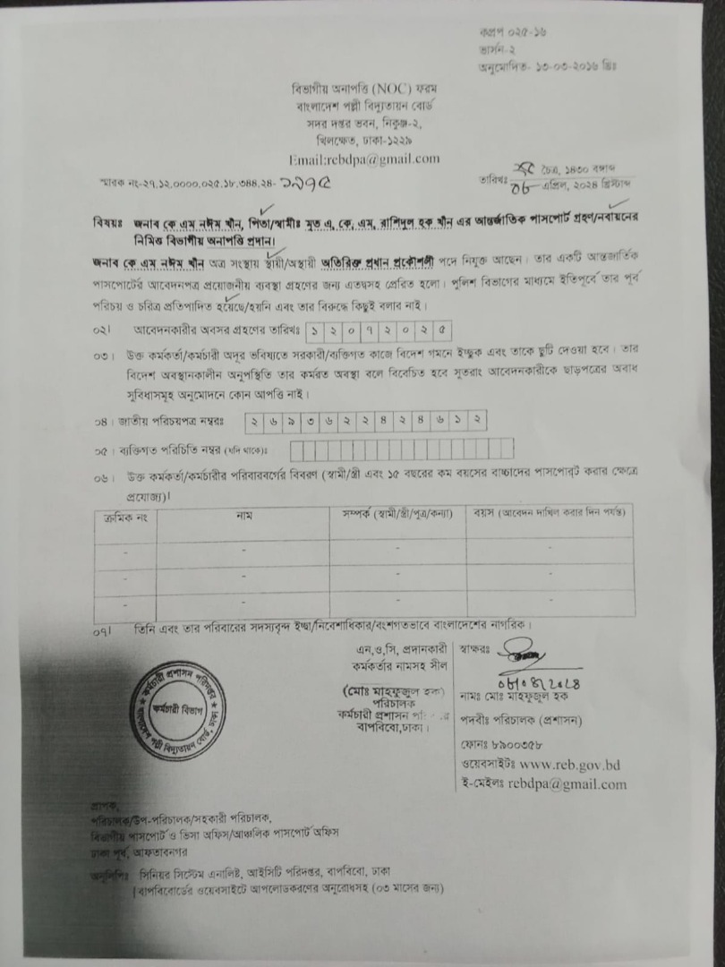 | ৬৫১ | মোঃ মামুনুর ইসলাম সহকারী প্রকৌশলী | ৩০/০৪/২০২৫ | |